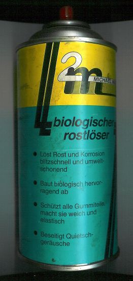 Ein biologischer Rostlöser mit guten Eigenschaften ist der von 2M. Er ist hautfreundlich, besitzt gute Kriecheigenschaften