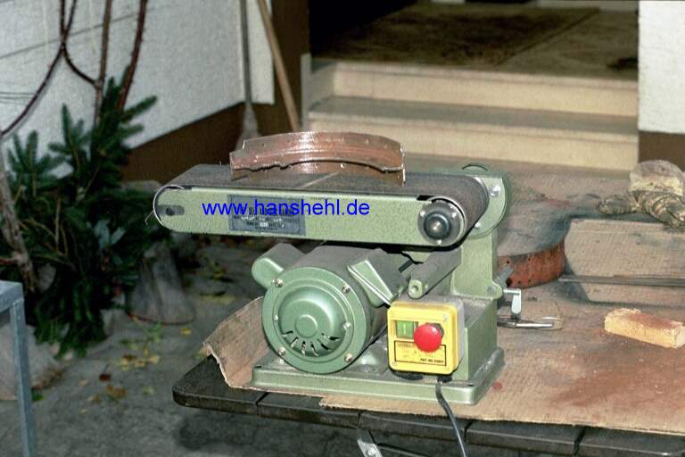Alter Rost ist nur schwer zu entfernen, man kann die Bremsbacken sandstrahlen oder mit einem Carbid-Schaber und Handarbeit beginnen. Ein Bandschleifer hilft auch nur wenig und mit Schleifpapier geht fast garnichts weg. Die Stanzgrate und Kanten werden mit einer Feile abgeschliffen. Nicht vergessen, die Löcher mit einer passenden Rundfeile zu entrosten. |