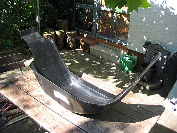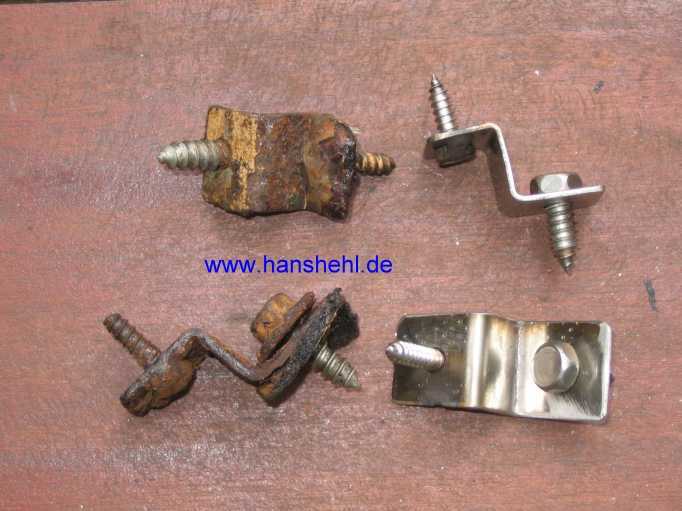 1994 baute ich die ersten 5 Winkel für die Innenkotflügel noch aus Eisenblech. Nach 12 Jahren waren sie dann ziemlich verrostet, nun sind sie aus 1 mm starkem Edelstahlblech gefertigt. |