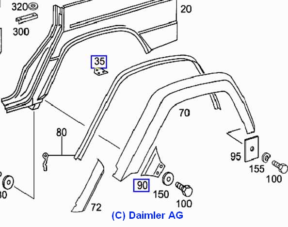 1.2 Innenkotflügel hinten beim 460 / 280GE: (mit Kotflügelverbreiterung):