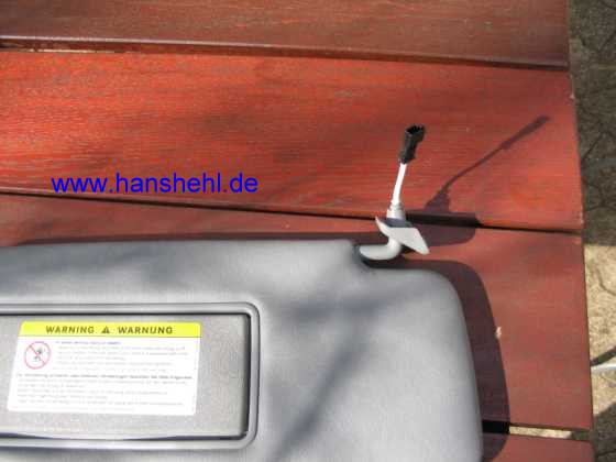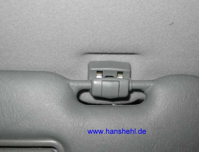 Die Sonnenblenden sind mit zwei Blechschrauben angeschraubt, ebenso die Halter (kleinen Deckel nach unten kippen) und die seitlichen Handgriffe. |