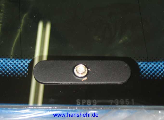 mit zwei durchsichtigen Klebepads auf die Glasscheibe geklebt. Ich habe die Platte von der alten Windschutzscheibe mal abgetrennt. |