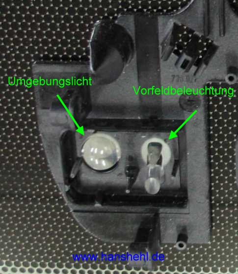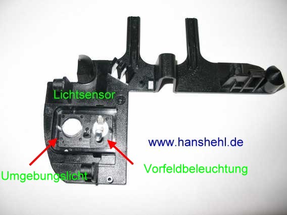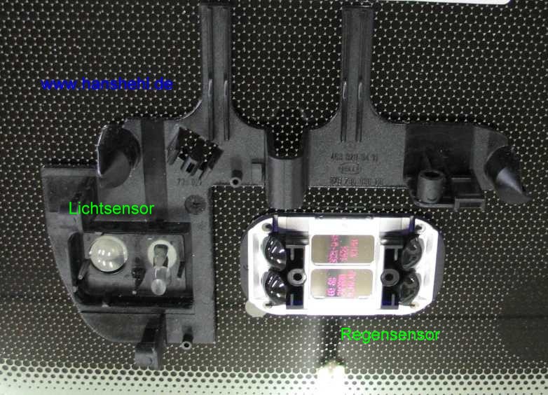 | Die Bodenplatte (A4638200411, wird nicht mehr geliefert, Hella, 9XB736 930-00) des Lichtsensors ist auf der Rückseite