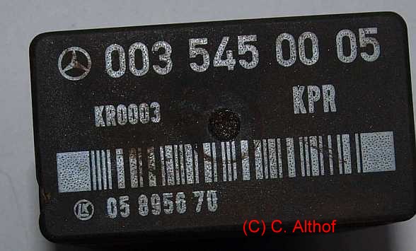 Leuchten in regelmäßigem Abstand die ABS- und SRS-Leuchte auf, kann es an einem Wackelkontakt im Überspannungsrelais liegen. Damit ist auch ein unregelmäßiger Motorlauf verbunden, da das Steuergerät eine schwankende Versorgungsspannung erhält. Das Relais ist auch beim Pkw W126 verbaut. Eine Anleitung zur Reparatur fand sich auf der Webseite von www.thomconsulting.de/MB/ueberspschutz.htm (Hinweis von Ottoline, Forum viermalvier.de, 26.07.2011) Mit Webarchive.org findet man die Kopie dieser Webseite, vom 16.Mai 2010, hier als Pdf. |