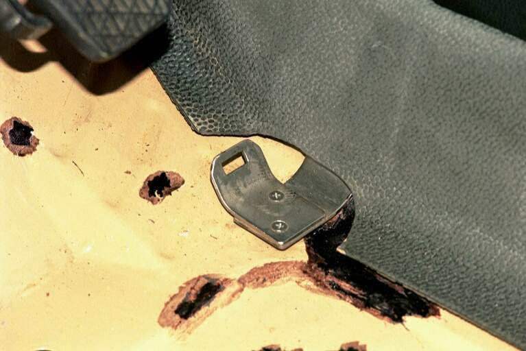 Die Dichtung Dichtung/Spritzwand/Gaspedal: A1233010497 in der Spritzwand vergammelt nach Jahren (wie links im Bild zu sehen ist) und Wasser dringt ein, muß also erneuert werden. |