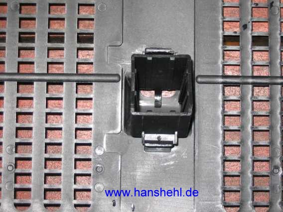 | Der Steckereinsatz läßt sich nach vorne aus dem Gehäuse drücken. |