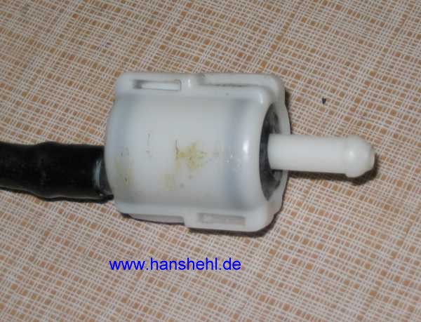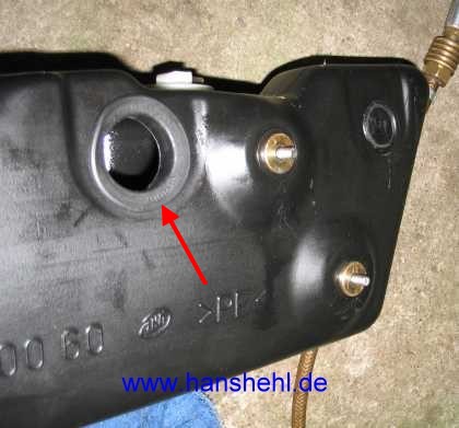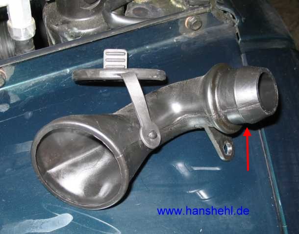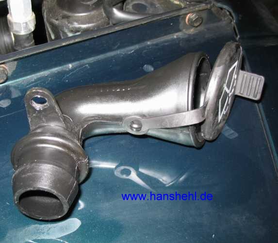 | Nachdem die Mutter am Halter des Einfüllstutzens abgeschraubt ist, kann dieser abgezogen werden. | ![]() |