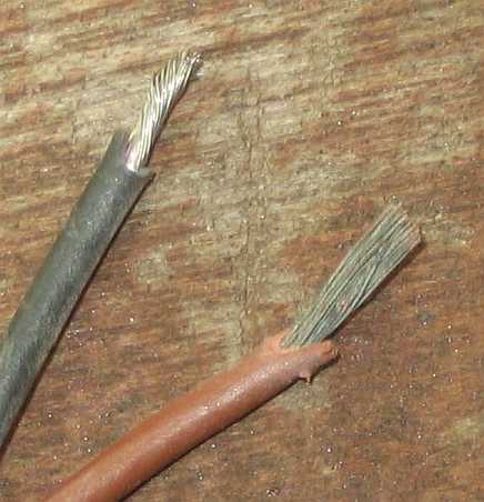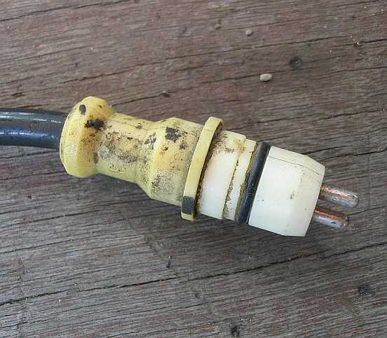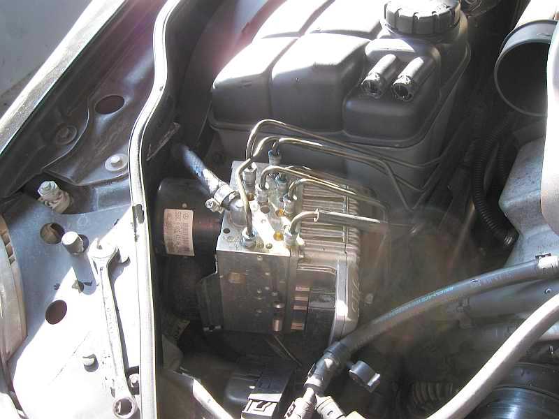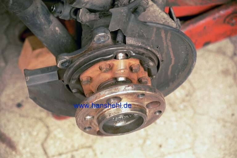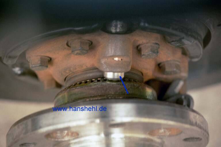 Ein einfacher ABS-Sensor besteht aus einer Spule, in der ein perforierter Metallring (auf der Radnabe befestigt) ein periodisches Spannungssignal durch Induktion erzeugt. Modernere ABS-Systeme wie beim SL55AMG besitzen als Sensor einen Hallgeber, der durch die Magnetfeldwechsel an einem Multipolring die Drehzahl eines Rads erkennt. Leuchtet die rote ABS-Kontrollleuchte, kann die Störung vom Kabel zum ABS-Sensor kommen. Bei einem 300GD, Bj. 1991 war das Kabel zum linken Sensor defekt. Der eigentliche Sensor hat einen Innenwiderstand um die 1000 Ohm. Dies kann man mit jedem billigen Vielfachmessgerät am Stecker oder an der Buchse messen. Besonders brüchig wird der Kabelmantel in dem kurzen Stück Wellrohr. Eine Ader des Kabels hatte Kupferfras, die Litze löste sich auf. Aber man kann mit einem zweiadrigen Gummikabel und Schrumpfschlauch das defekte Kabel zwischen Sensor und Stecker ersetzen. Ein neuer Sensor A4635400117 (hi-li) . |