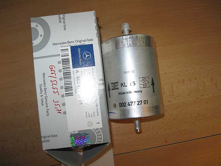 ![]() Typ 230: Gemäß dem Serviceblatt (ASSYST: AP00.20-P-0001L) sollte der Kraftstofffilter nach 4 Jahren / 80.000km Differenz gewechselt werden. AP47.20-P-0780DC Typ 463: Gemäß dem Serviceblatt (ASSYST: AP00.20-P-0001GN) sollte der Kraftstofffilter nach 4 Jahren / 80.000km Differenz gewechselt werden. G55AMG : 463.207/208/227/228/230/231: AP47.20-P-0780GA Benötigt werden auch zwei kleine Schlauchklemmen W000589403700, siehe Tipp 15: Werkzeug |