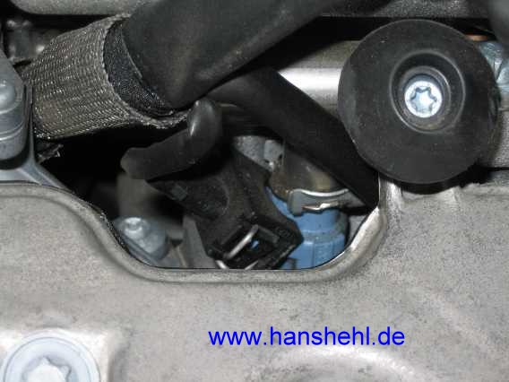 | So müssen die Schlauchschellen A0089974490 nicht geöffnet werden. Der Volllast-Entlüftungsschlauch (grüner Pfeil), A1120181882 wird von der Zylinderkopfhaube abgezogen. | ![]() |
