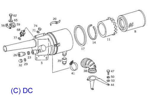 Stöbert man etwas im EPC, so findet man für staubreiche Länder spezielle Luftfilter als Sonderausstattungen (Baumuster 912,914), die man eventuell anpassen könnte (aber teilweise nicht mehr lieferbar). SA 12237 - Ölbad-Dämpferfilter mit nachgeschaltetem Papierfilter SA 12454 - Dämpferfilter mit Zyklonvorabscheider SA 1264 -- Zyklonvorabscheider A0130945102 |