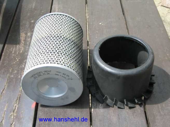 ![]() Den Luftfilter (z.B. von Knecht: AG171, MANN: C15127 A0020942304 sollte man je nach Staubanfall von innen nach außen ausblasen und nach einigen Jahren ersetzen. Bekommt man 20% Rabatt bei Mercedes als G-Club- Mitglied!), sind die Preise fast wie im Zubehörhandel. Der Austausch ist dann notwendig, wenn bei der Abgasuntersuchung die Werte zu schlecht werden. Auch die Leistung fällt ab. Der Filtereinsatz ist 15 cm x 23 cm (mit Gummirand) groß. Siehe auch Luftfilter 280GE. |