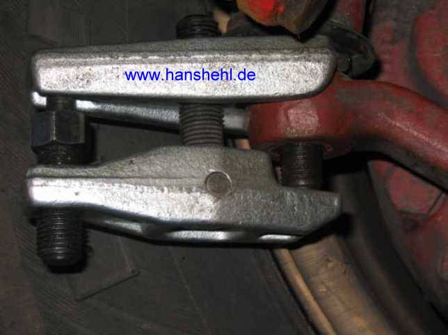 | Zum Ausbau der Lenkstange kann z.B. problemlos der kleine Abzieher Nr. 779 von Hazet (etwa 70 Euro inkl.) verwendet werden. Er ist robust, es gibt notfalls einen Reparatursatz. Den Abscherbolzen gibt es einzeln als Zylinderpassstift, siehe Tipp Werkzeug. Allerdings ist der Abzieher für die größeren Lenkstangen beim 463 zu klein, da ist der Abzieher 779-2 geeignet. | ![]() |