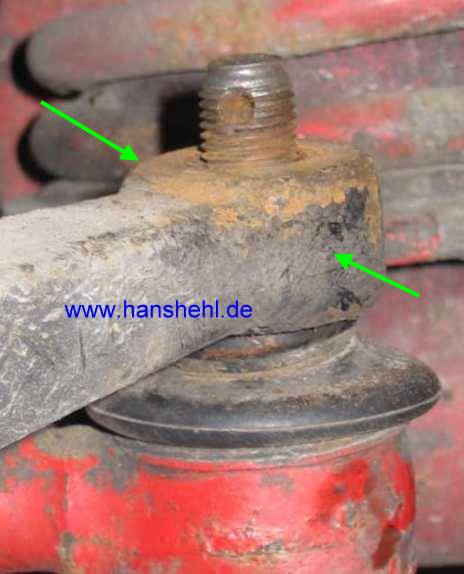Ab Vorderachse Nr. 7007726 wurde das Gewinde des Gelenkstückes verstärkt (nun M24) und auch der Konus von 18 auf 20 mm verbreitert (Kronenmutter M16x1,5) , also sind auch größere Löcher im Lenkhebel! |