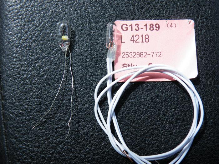 Stand 4/2016: Man findet diese Miniaturglühbirnchen im Modellbau und z.B. bei Fa. Conrad, Suchbegriff Micro-Glühlämpchen, Miniatur-Lampen usw., z.B. der Fa. Barthelme. |