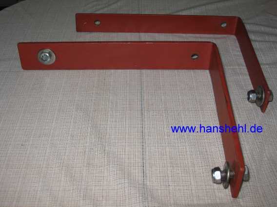 Der kleinere Winkel wird an den runden Abschlußdeckel des CD-Wechslers geschraubt. Die Seitenwand ist mit vier M8-Schrauben befestigt und sehr stabil. Auf der linken Seite kann für den CD-Player ein Ausschnitt vorgesehen werden. Die Befestigung erfolgt wieder mit zwei Flacheisen. Zusätzlich kann man an den Seitenwänden zwei weitere Zurrösen anschrauben oder die unteren oben verwenden. |