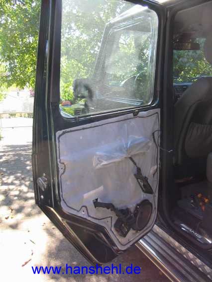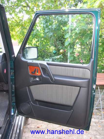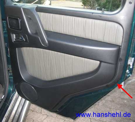Den Abbau der Türverkleidungen begann ich beim G55AMG bei der rechten Fondtür. Die nach 5 Türen gesammelten Erfahrungen sind nur beim Fondtür-Tipp eingearbeitet, also sollte man ihn zuerst lesen. |