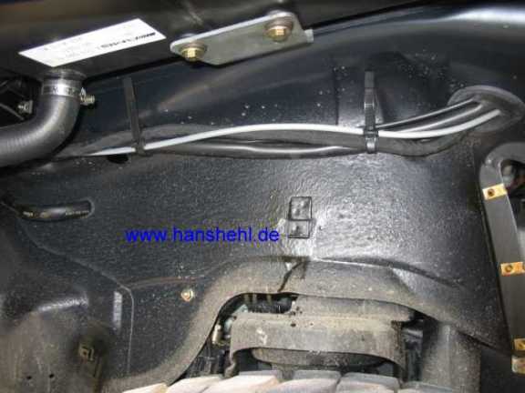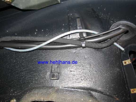 Die weißen Plastikleitungen der Nebelscheinwerfer-Belüftung wurden einfach um die vorhandenen Leitungen gewickelt anstatt durch die Kabelbinder zu führen. |