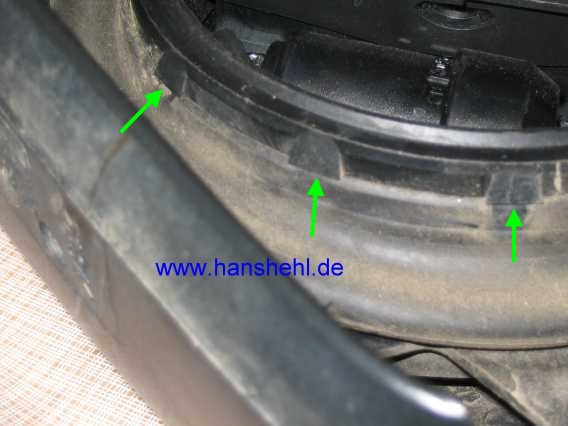 | Die Verkleidung wird vorsichtig ausgeklipst und abgezogen. | ![]() |