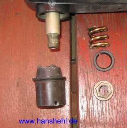 Wackelt der Spiegelfuß im Sockel, kann man einen passenden Stahlblechstreifen einer alten Fühlerlehre ( 0,05 mm abgestuft) dazwischen setzen. |