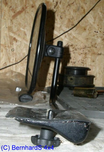 BernhardS (viermalvier) baute für den G270CDI die Halterung um (DC-Spiegel B67816410). Er entfernte die vordere Kante an der Halterung und verlängerte die Spiegelstange um 10 cm. |