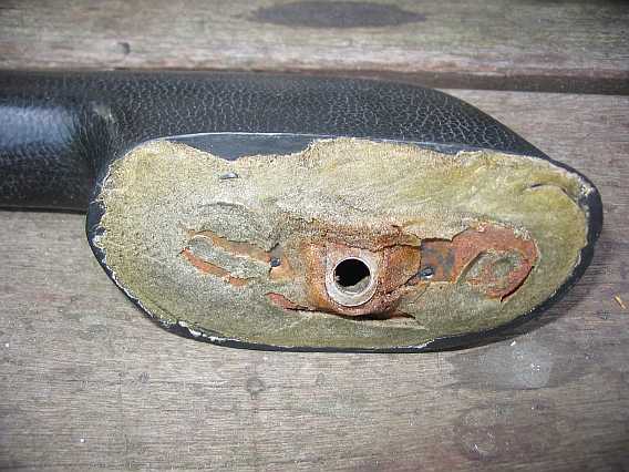 | Die Türschale ist beim 240GD/1979 an der Tür noch mit 6 Spezialschrauben und Kunststoffdübel befestigt. Inzwischen gibt es auch Gummistöpsel mit M4-Gewindebuchsen mit metrischem Gewinde. | ![]() |