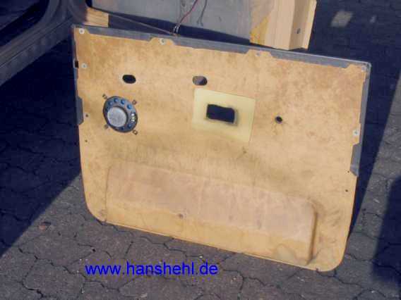 | Ein flacher Autolautsprecher von Blaupunkt passt zwischen linker oberer Ecke der Ablageschale und der Armlehne genau in die Aussparung der Tür. | ![]() |