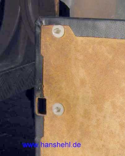 | Die Türverkleidung wird durch Plastikdübel/Klammer A4639880278 gehalten. Diese sind in die Löcher in der Hartfaserplatte eingedreht. Auch beim G55AMG werden sie zur Befestigung der Türverkleidung noch verwendet, siehe Fondtür G55AMG. | ![]() |