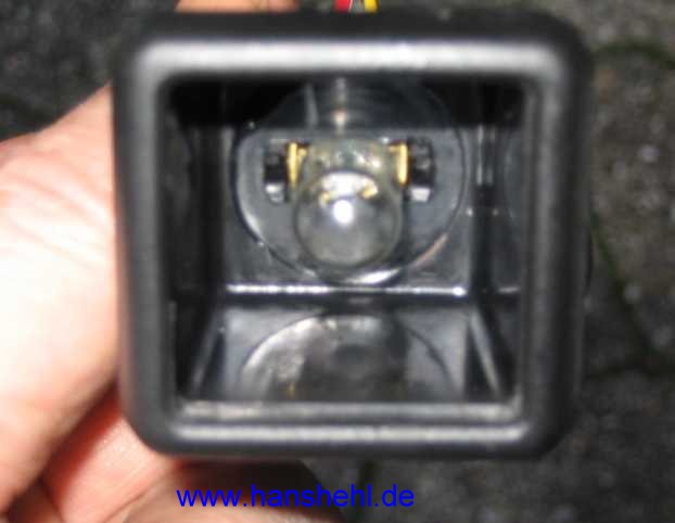 Das Riffelglas ist in das Gehäuse nur eingesteckt, zum Wechsel der Glassockelbirne kann man es heraushebeln. |