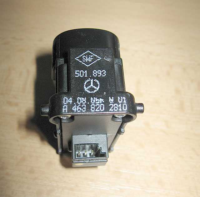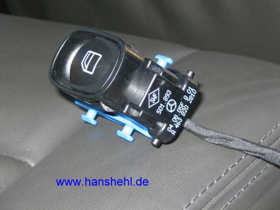 Nun kann der Schalter Fensterheber (Taster) A4638202810 aus der Rosette A4637270059 (Farbnummern 7137, 9116) entnommen werden. Oder man zieht den Kabelstecker ab. |