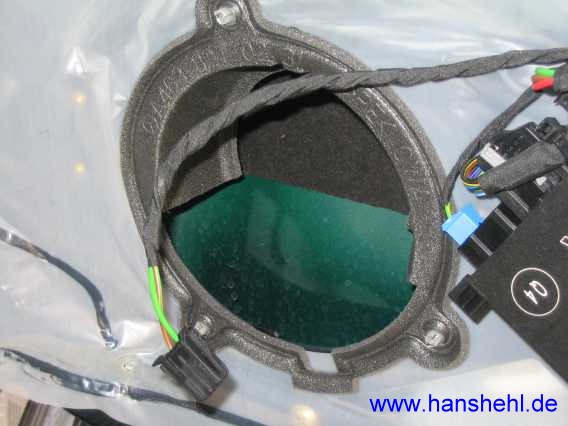 Da die Membran eine Gummisicke besitzt, ist die Basswiedergabe erstaunlich gut. Im Comand 2.0-Menue müssen aber die Bässe angehoben werden. Die weiße Wasserschutzfolie ist für den Lautsprecher ausgeschnitten. |