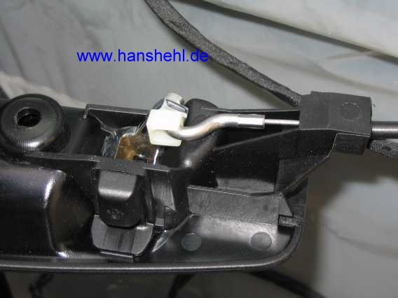 Der Türöffner ist mit einem einstellbaren Seilzug mit dem Türschloss verbunden. Beim 240GD war es noch eine Verbindungsstange anstelle des Seilzugs. Türinnenbetätigung Fondtür aus-, einbauen: AR72.12-P-2310GN. |