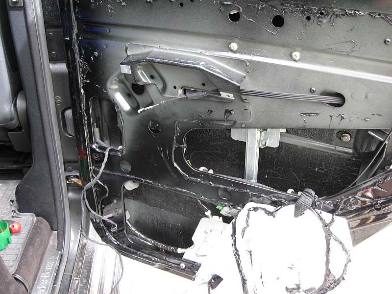 Ein neuer Fensterheber wurde eingebaut. Die Seilzüge wurden mit Korrosionsöl eingesprüht und die Führungsschiene gut gefettet. Die unteren Befestigungsschrauben der Lautsprecherhalterung und des Motors zeigten Rostansatz. Ein Kulanzantrag bei Mercedes wurde abgelehnt. |