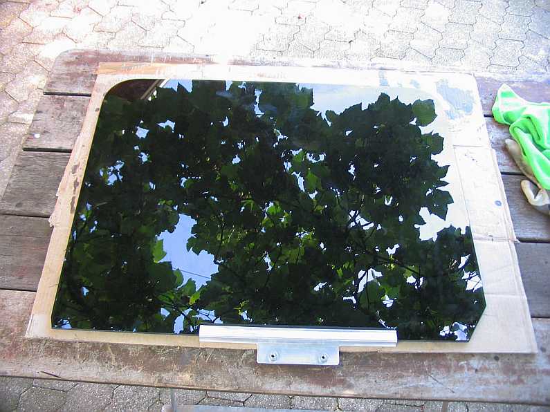 | Die innere Gummidichtleiste am Fenster wird abgeschraubt und darunter ebenfalls konserviert. |