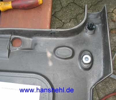 | Die Verkleidungen der Seitenholme sind oben mit zwei und unten mit einer Schraube angeschraubt. | ![]() |