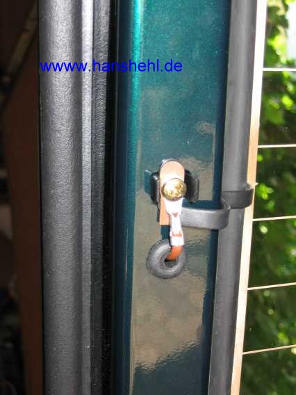 | Darunter sind seitlich an der Scheibe die beiden Anschlüsse der Heckscheibenheizung. | ![]() |