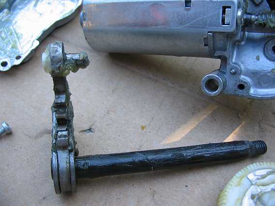 | Die Scheibenwischerachse kann man einfach mit dem Hebelwerk abziehen. Auf den Dichtring und die Hülse achten. | ![]() |