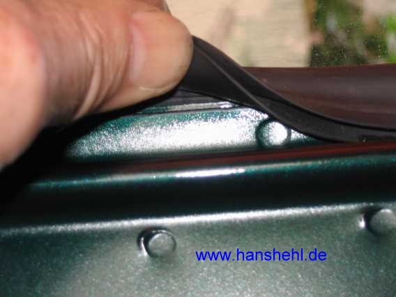 | Die braunen Scheiben waren dann schnell eingebaut. Es wird nochmal mit Wachs unter dem Scheibengummi konserviert. | ![]() |