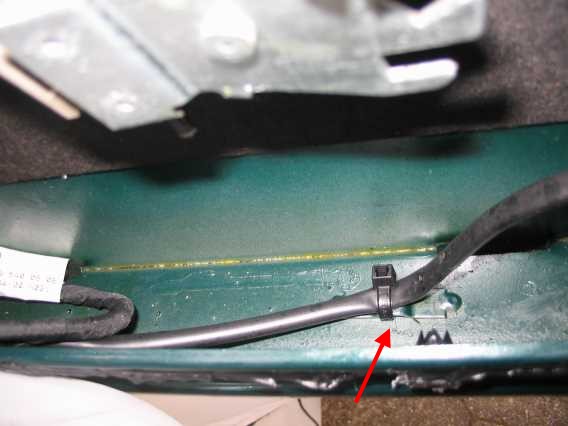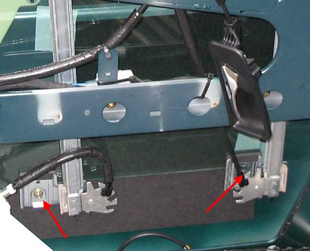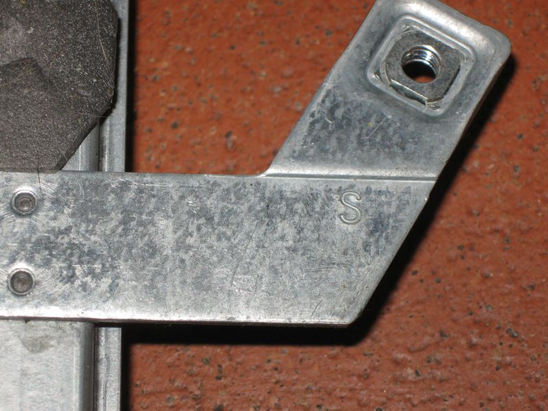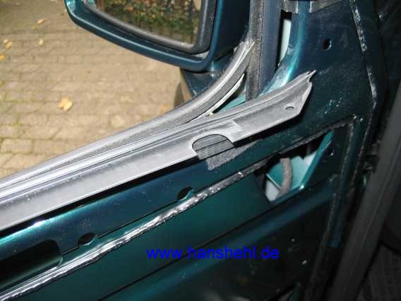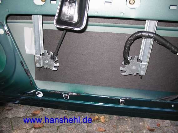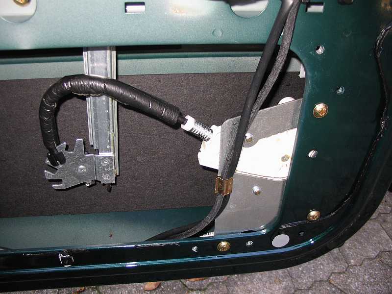 Bilder von der Beifahrertür zeigen den unteren Teil des Fensterhebers mit zwei getrennten Führungsschienen. |