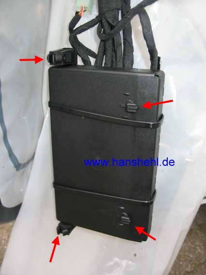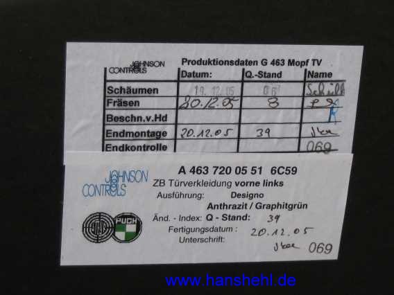 Das linke Türsteuergerät (N69/1) A4638200926 von einem G270CDI (Fahrertür, Danke Siggi) ist ein eigener kleiner Computer. Es wurde durch A4638201326 ersetzt und ist auch beim G55AMG eingebaut. Das Steuergerät in der unteren Türecke ist nur gegen Spritzwasser geschützt und wie auch der Lautsprecher bei Off-Road-Fahrten durchs Wasser sehr gefährdet. |