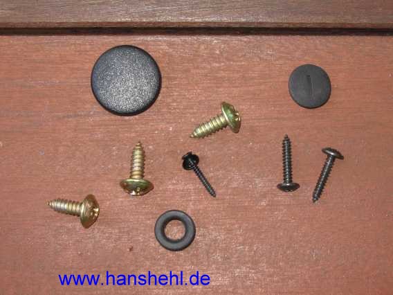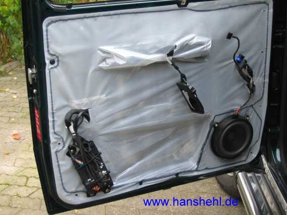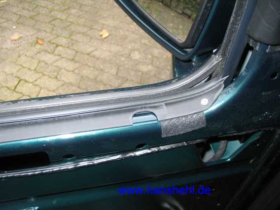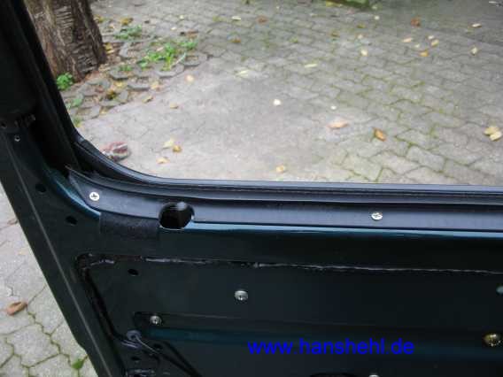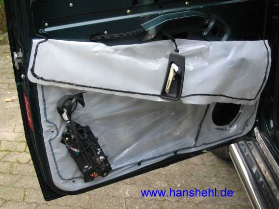 Der Abbau ist bei den Türen immer gleich. Unter den Abdeckungen die zwei Schrauben, die den Türgriff halten, lösen. Ebenso die Schraube am Türöffner und die kleine Schraube rechts oben an der Türverkleidung lösen. Bei Fahrer- und Beifahrertür die zwei unteren Schrauben am Ablagefach abschrauben. Der Abbau der Türfolie ist im Tipp Fondtür tipp6a1.htm ausführlich beschrieben. |