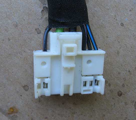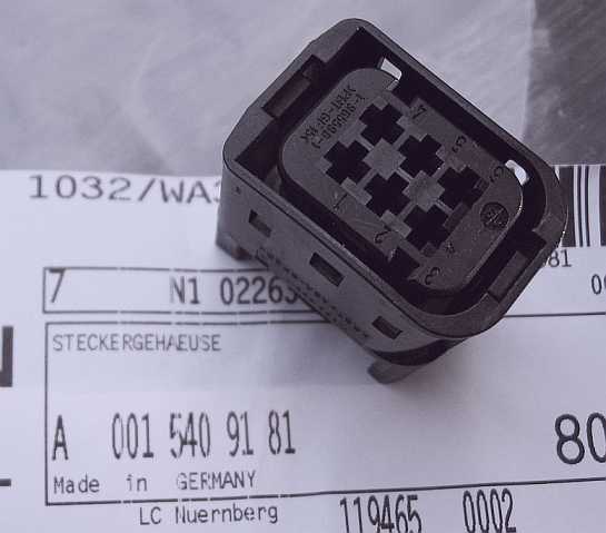 Es hat an der Motorseite den schwarzen Stecker (Steckergehäuse 6-Pin 6-polig JPT: A0015409181, AMP 1-967332-1) und an der Steuergeräteseite den weißen Stecker (EPC: Türleitungssatz). Steckereinsatz: 0,5-1.0 mm2 JPT: A0115458126. |