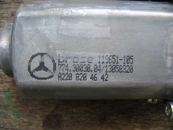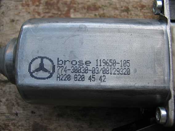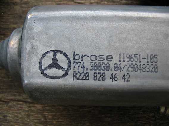 Das EPC-Net gibt keine Auskunft, ob die Motoren gleich sind. Erst ein direkter Vergleich zeigt, dass die 4 Motoren sehr ähnlich sind. Die aufgedruckte Nummer A2208204542 /Brose 119650-105 oder A2208204642 / Brose 119651-105 ist aber bestellbar. Der Motor ist im EPC-Net nur bei den Pkws, z.B. W220, W203, CL55AMG usw. aufgeführt und wurde dort bis 30.09.2002 verbaut. Siehe auch Fensterhebermotor 230 r230/sl55amg-fenster.htm#b42). |