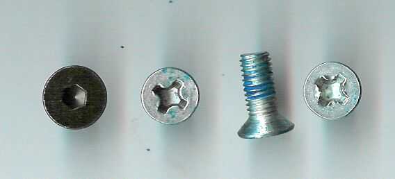 | Besser sind die als Ersatzteil erhältlichen Inbusschrauben N914125008704 für Inbusschlüssel Nr. 5. Leider werden noch immer (2/2006) die alten Kreuzschlitz-Schrauben verwendet ( war wohl eine Kiste übrig ;). |