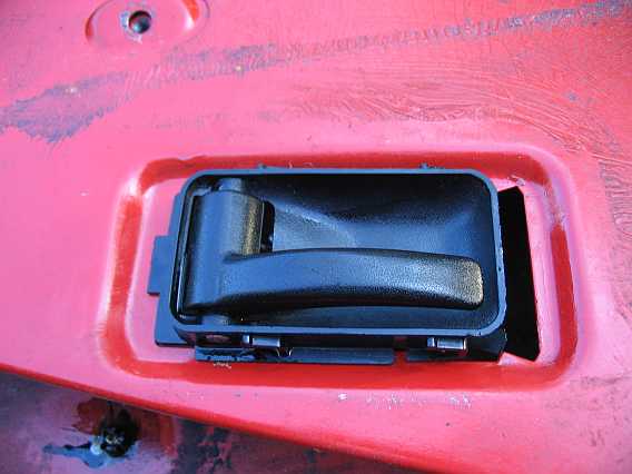Der Schließzylinder wird durch eine Senkkopfschraube (roter Pfeil) im Gehäuse festgehalten. Beim 463 hat sich im Prinzip nichts geändert, nur die Griffform und die kleine Unterlage ist etwas anders, siehe Tür 463 G55AMG tipp6b1.htm. |