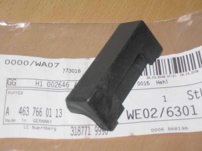 Beim G55AMG USA 463.271 gibt es für die Schließfalle eine Kunststoff-Abdeckung, A4637660113 (Puffer), die eine Verschmutzung hinter der Schlossfalle vermeidet. |