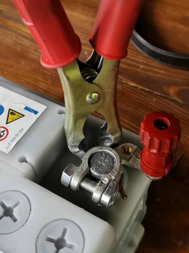 Da die Batterie also zunächst nicht abgeklemmt werden kann, hilft der Anschluss einer externen