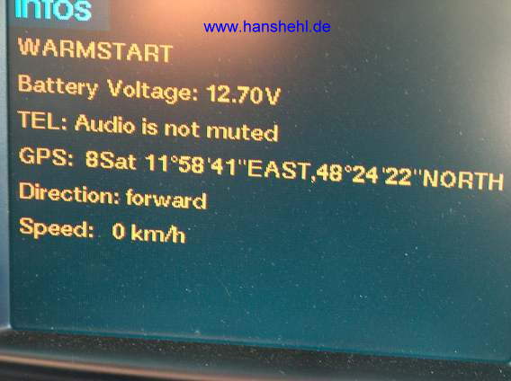Auch das Comand 2.0 hat eine Spannungsanzeige im Menü "Info" im Service-/Werkstatt-Menü.