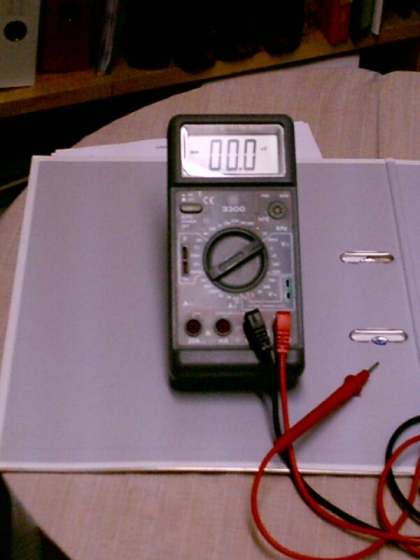 Ein einfaches elektronisches Vielfachmessgerät wird mit dem Pluspol am Minuspol der Batterie und an Masse, z.B. der Befestigungsschraube