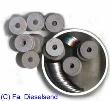 Druckeinstellung) Bei DC gibt es die Abstandsscheiben: A0000173652 in vielen Stärken, abgestuft um 0,05 mm von 1,00 - 1,95 mm. Fa. Dieselsend (www.dieselsend.de) bietet ein ganzes Sortiment von Scheiben an, z.B. 100 Stück, jede Stärke zu 5 Stück, auch mit verschiedenem Durchmesser. |